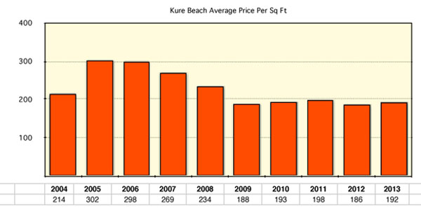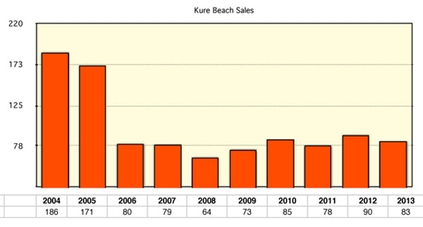 Sales and prices in Kure Beach have been fairly even over the past five years.
