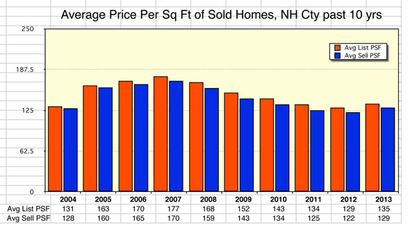 Chart 2.2: Average Prices Per Square Foot of Sold Homes, past ten years