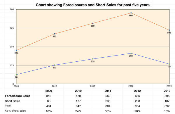 Trends in bank owned property. As you can see, bank owned sales and short sales peaked in 2012 and have dropped off quite a bit in 2013, both in terms of numbers and as a percentage of the overall market. In 2011, around 30%, or almost 1 in every 3 sales, was distressed. I expect that number will be down again in 2014. |