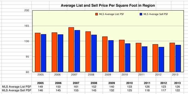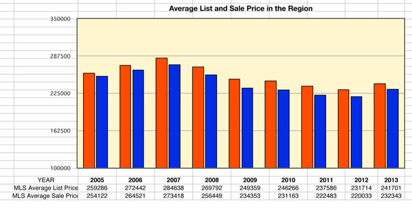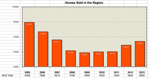 Home sales in the region saw a healthy increase in 2013. Prices fell very slightly and appear to be moving back up.